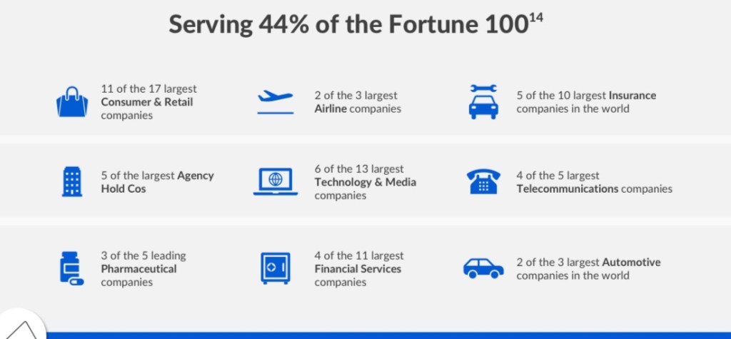 Zeta Global is a founder led, data-driven marketing technology company that uses artificial intelligence and automation to help brands acquire, grow, and retain customers across multiple channels. Zeta is not offering the same service as Google’s advertising or Meta’s advertising. Zeta aims to optimize a brand’s advertising spend by providing personalized, data-driven, omni channel solutions tailored to each customer’s needs. Unlike “competitors” Zeta is a unified platform, offering the full package, not just retention, or just acquisition. Zeta’s customer base is made up of large enterprises across many industries. They currently serve 44% of fortune 100 companies.